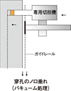 | 専用切削機の特殊ビットの回転・剪断力で端部→溝部連続切削 | ||
